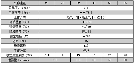 ZCG电磁阀参数: